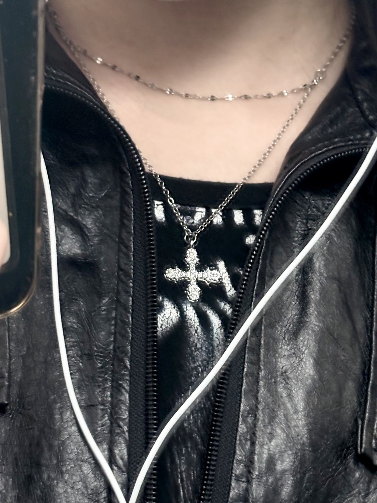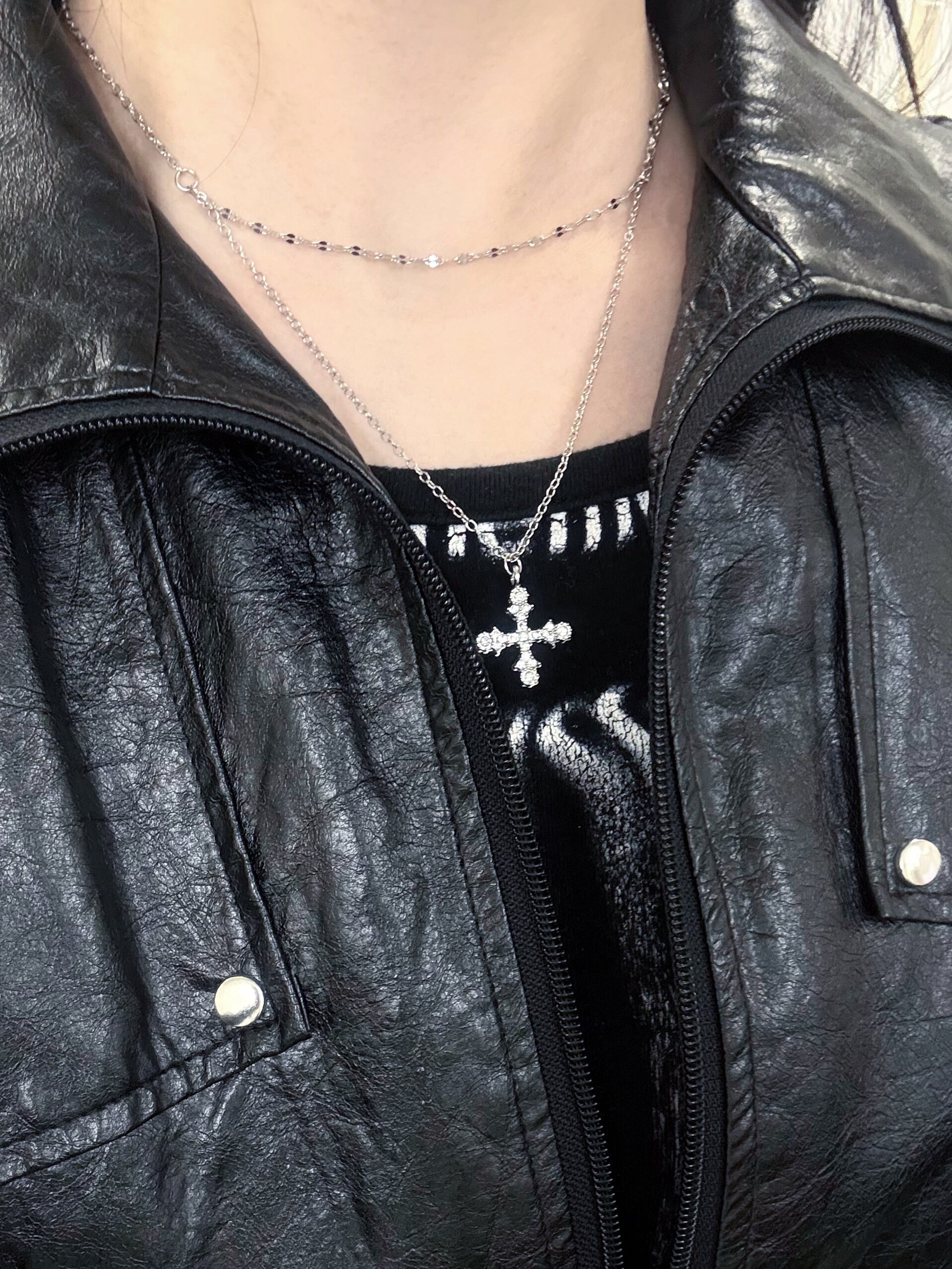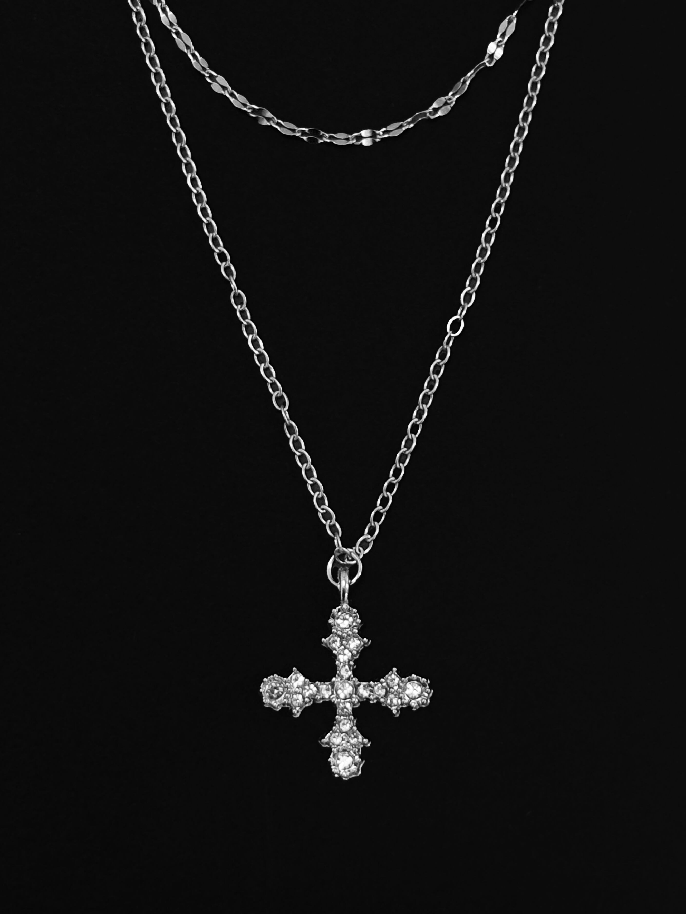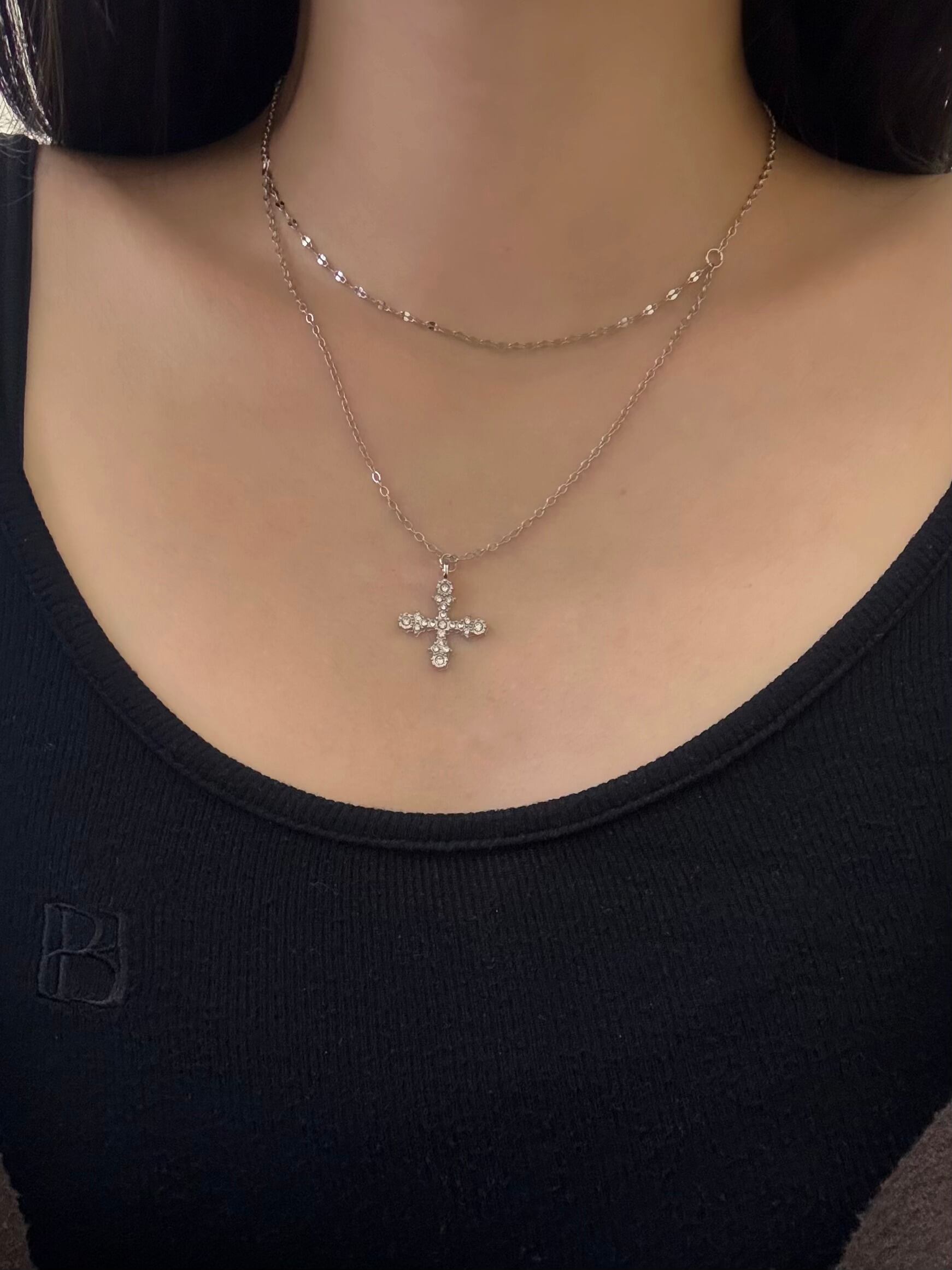 2連チェーンに小さなクロスチャームを組み合わせた、Twin Chain Cross Necklace。