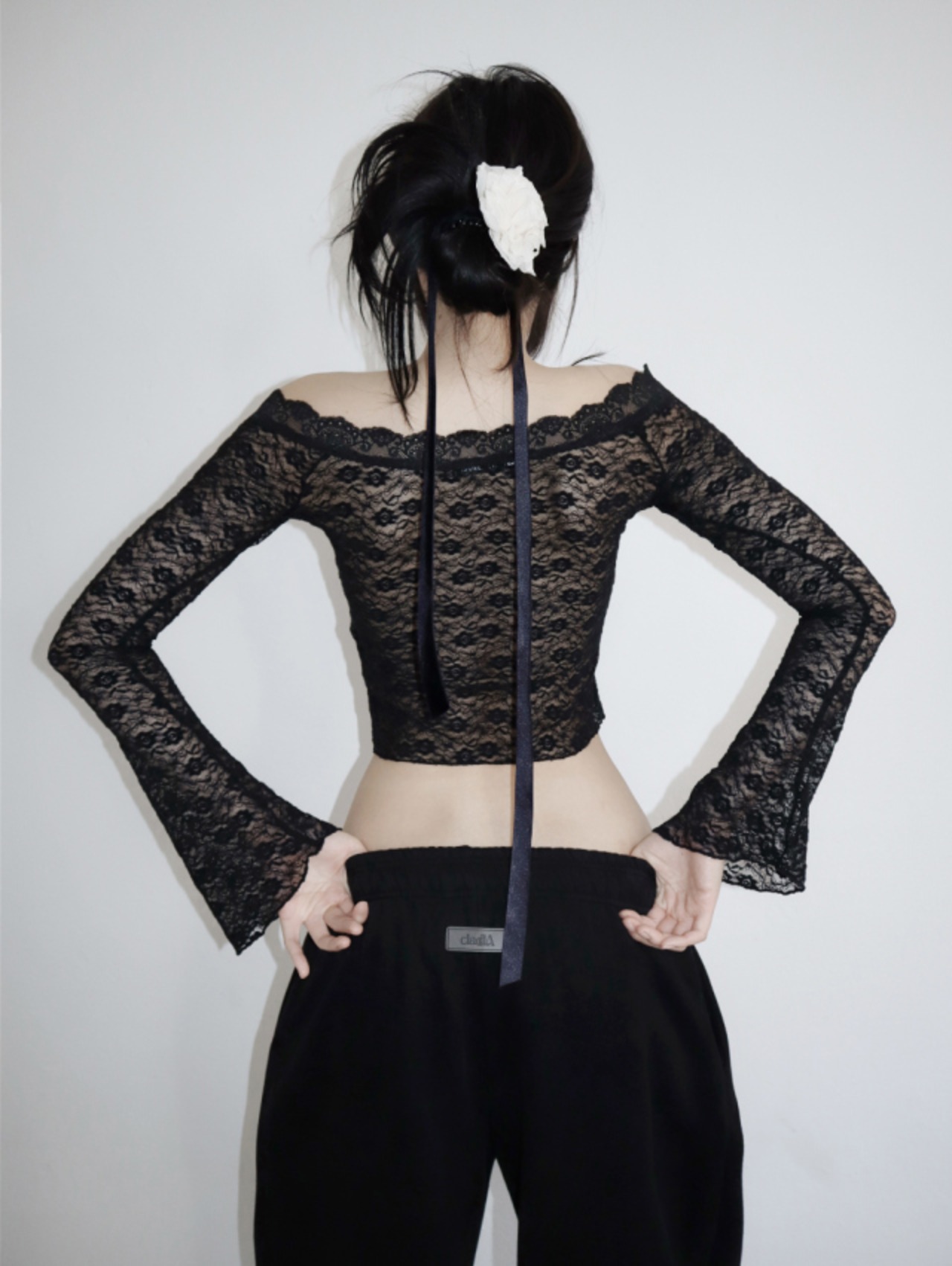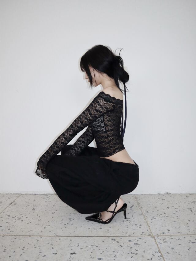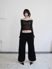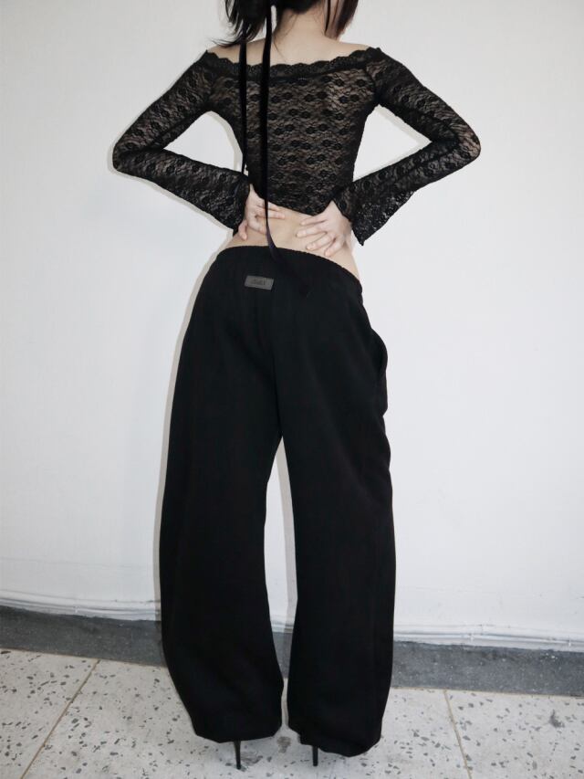ヒップは十分に余裕を持たせ、股上は浅めにとる事で骨盤のラインを綺麗に見せてくれるように作りました。