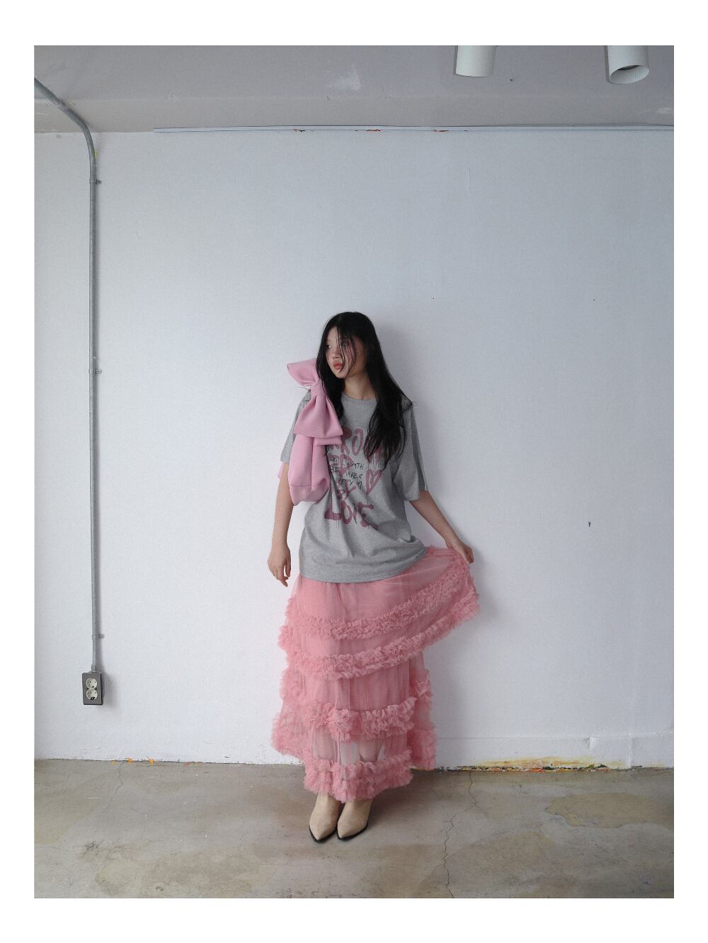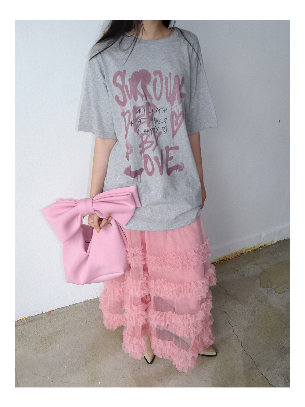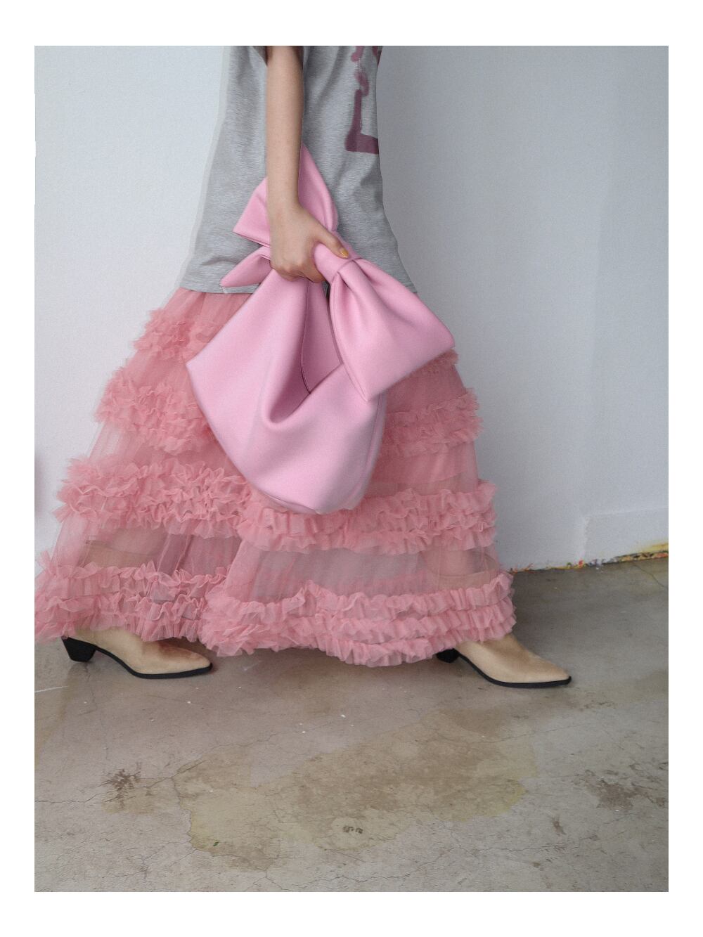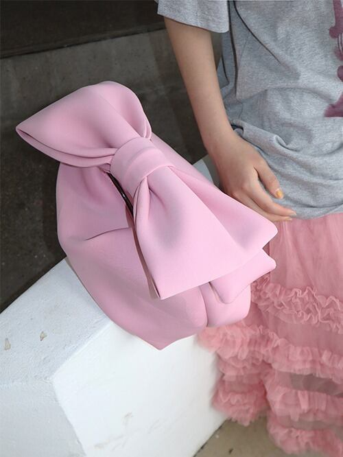 ショルダー部分にリボンのついたガーリーなバッグ。