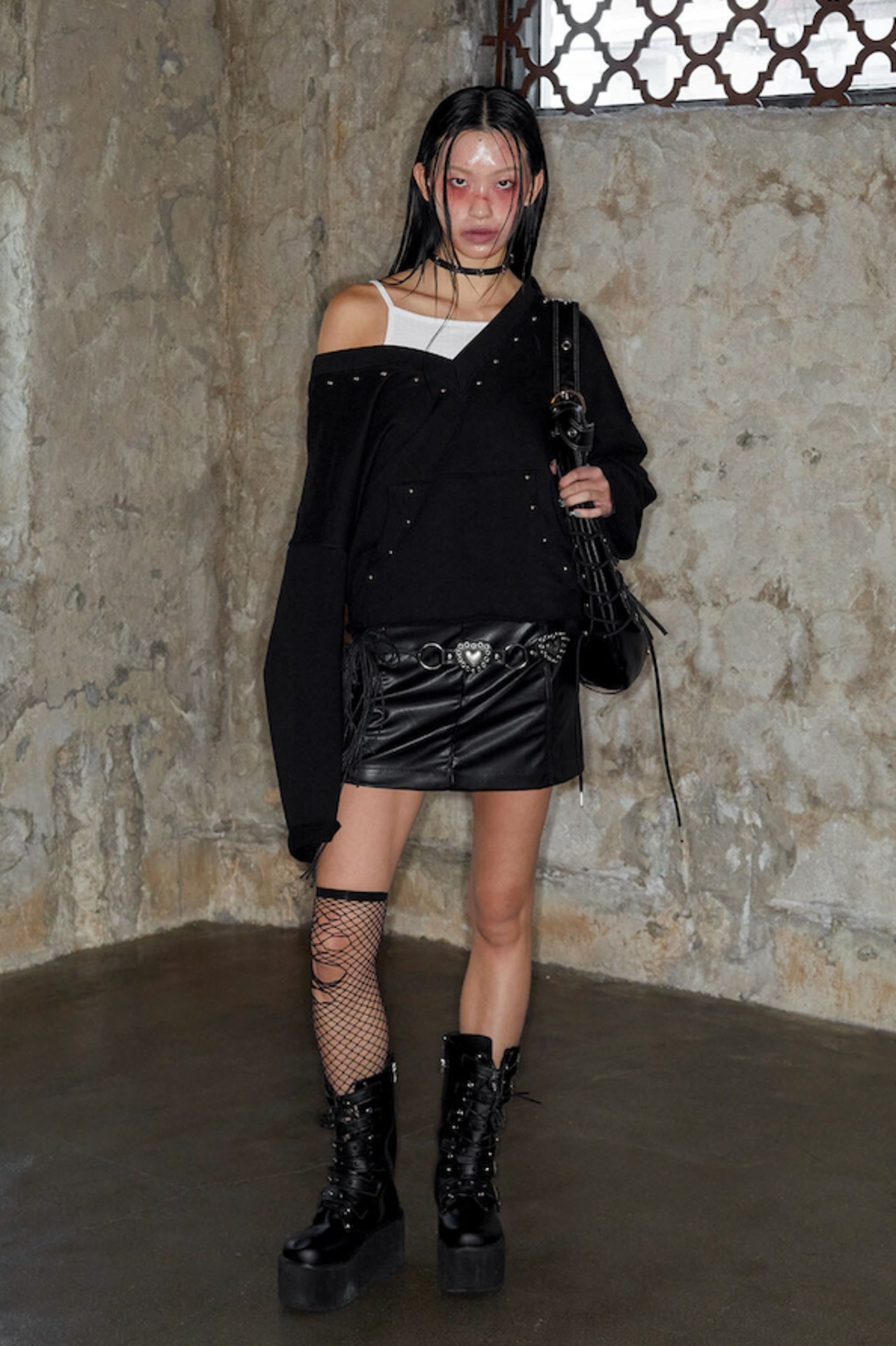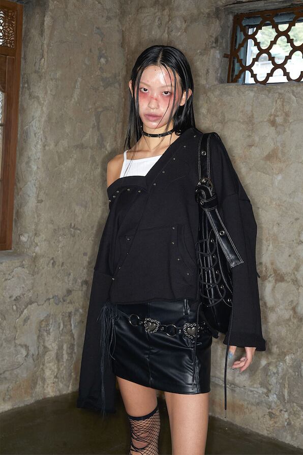 [NOTKNOWING] Deep V-Neck Stud Hoodie