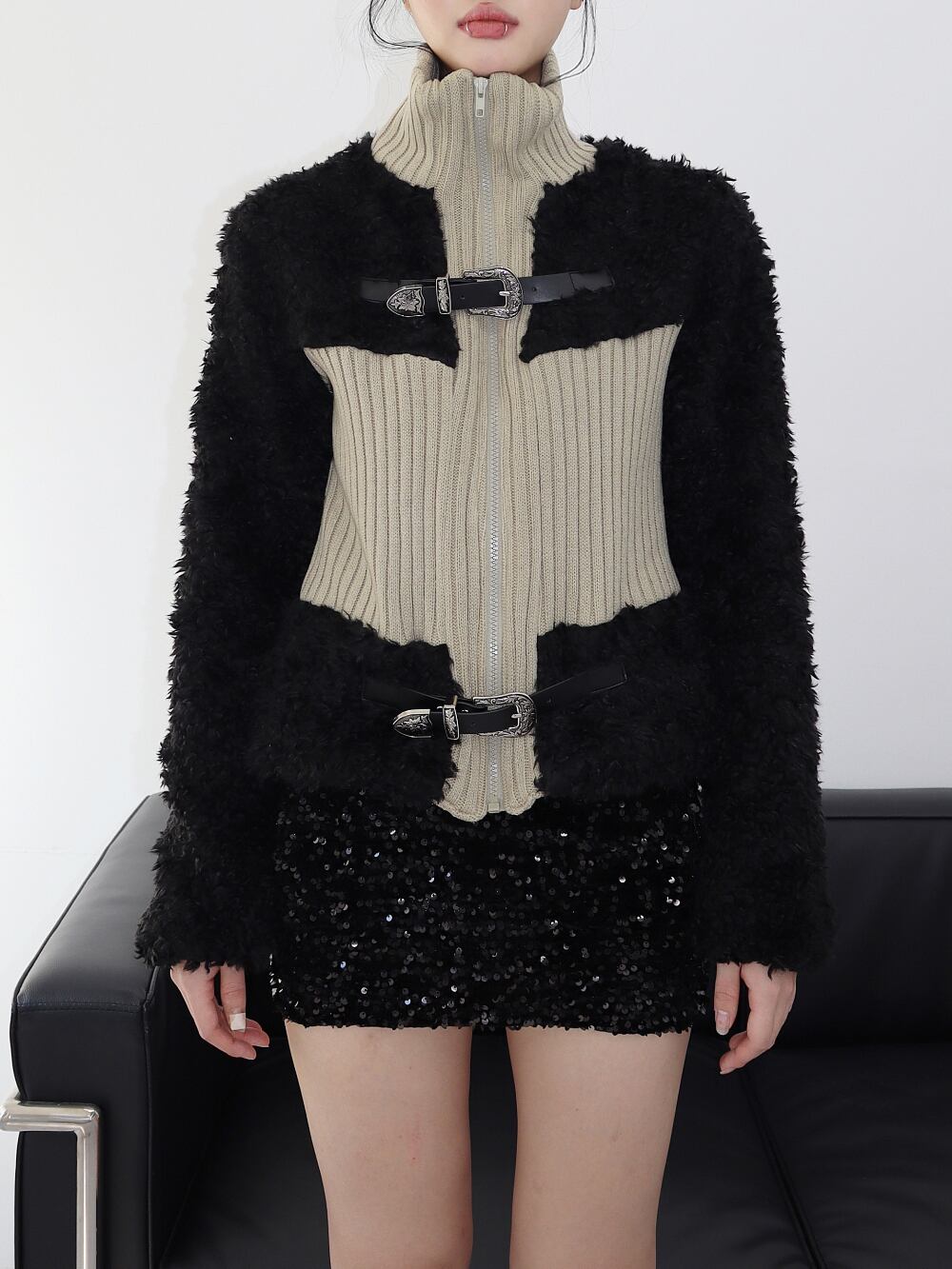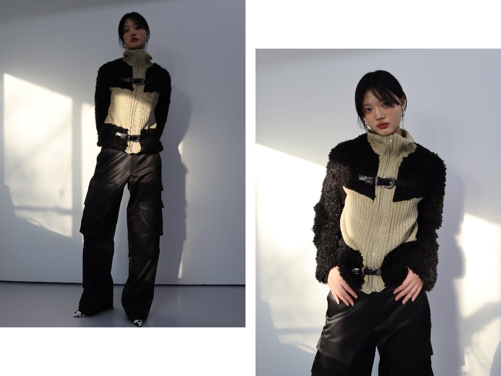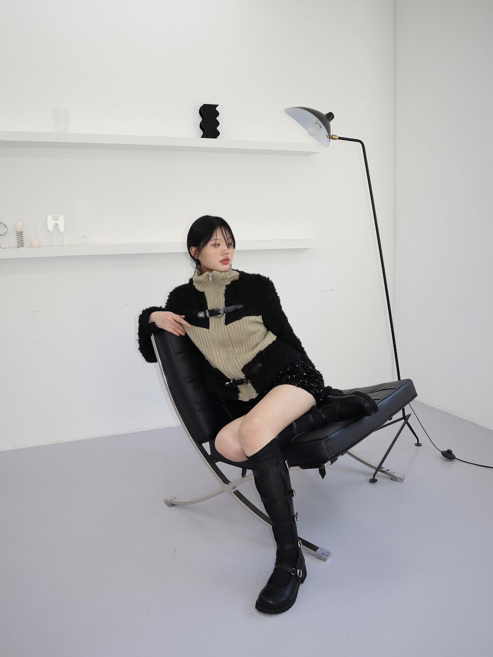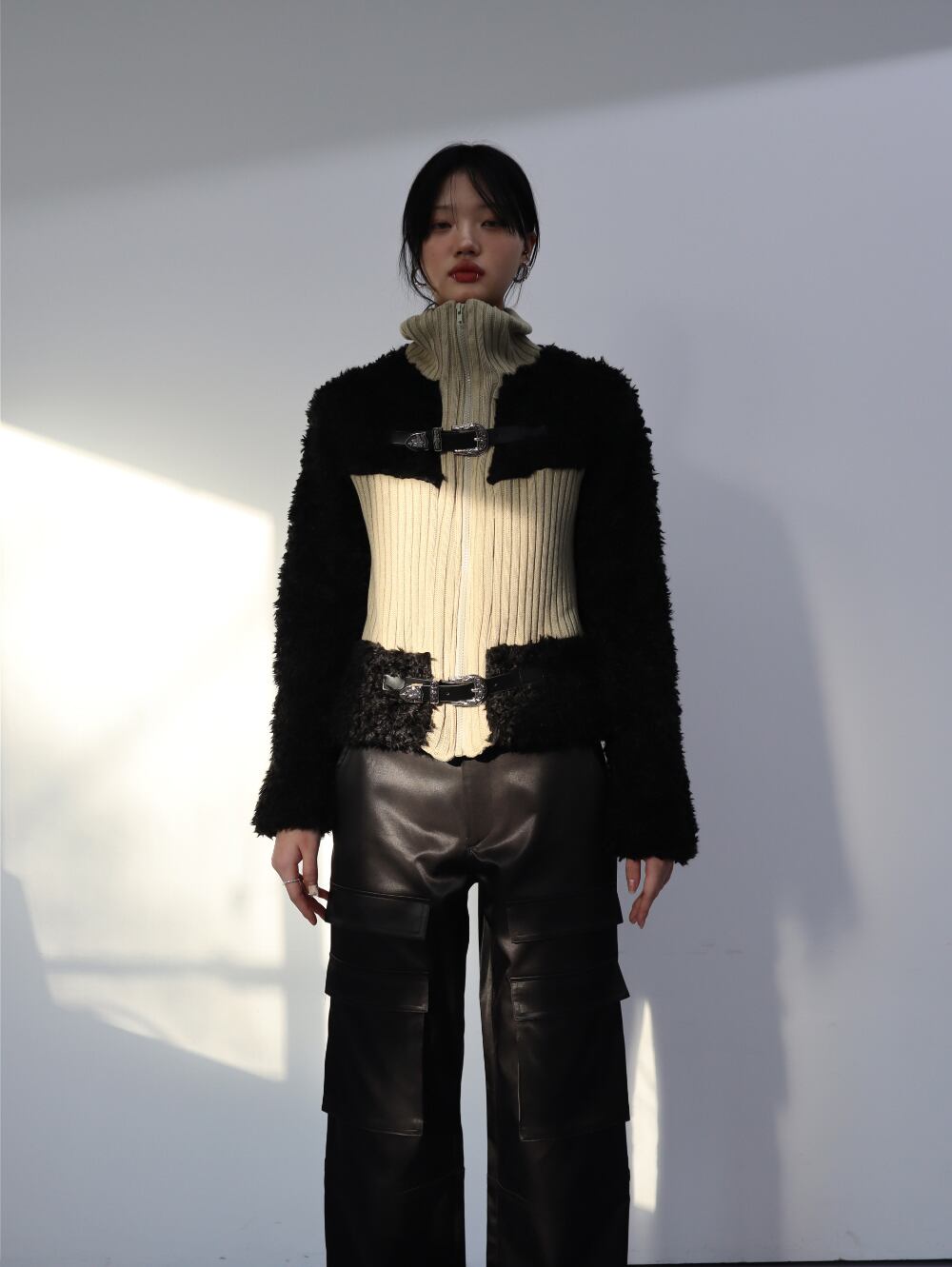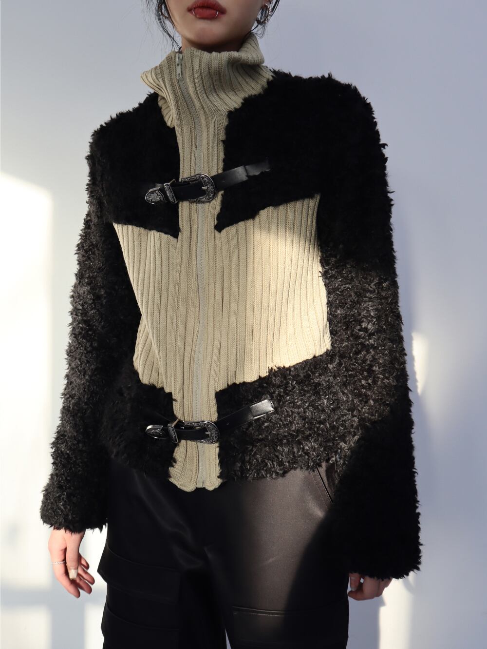 リブとプードルファーの異素材の組み合わせが珍しいアウターです。