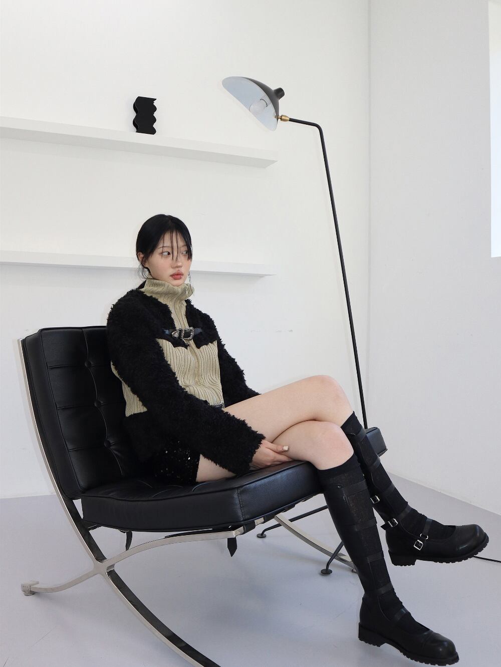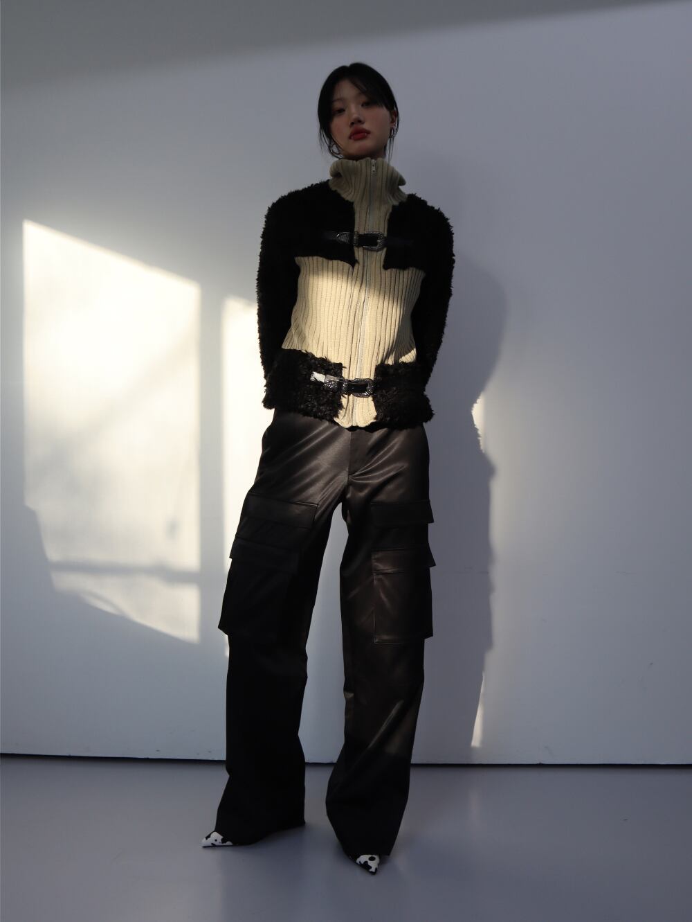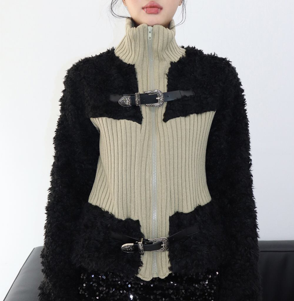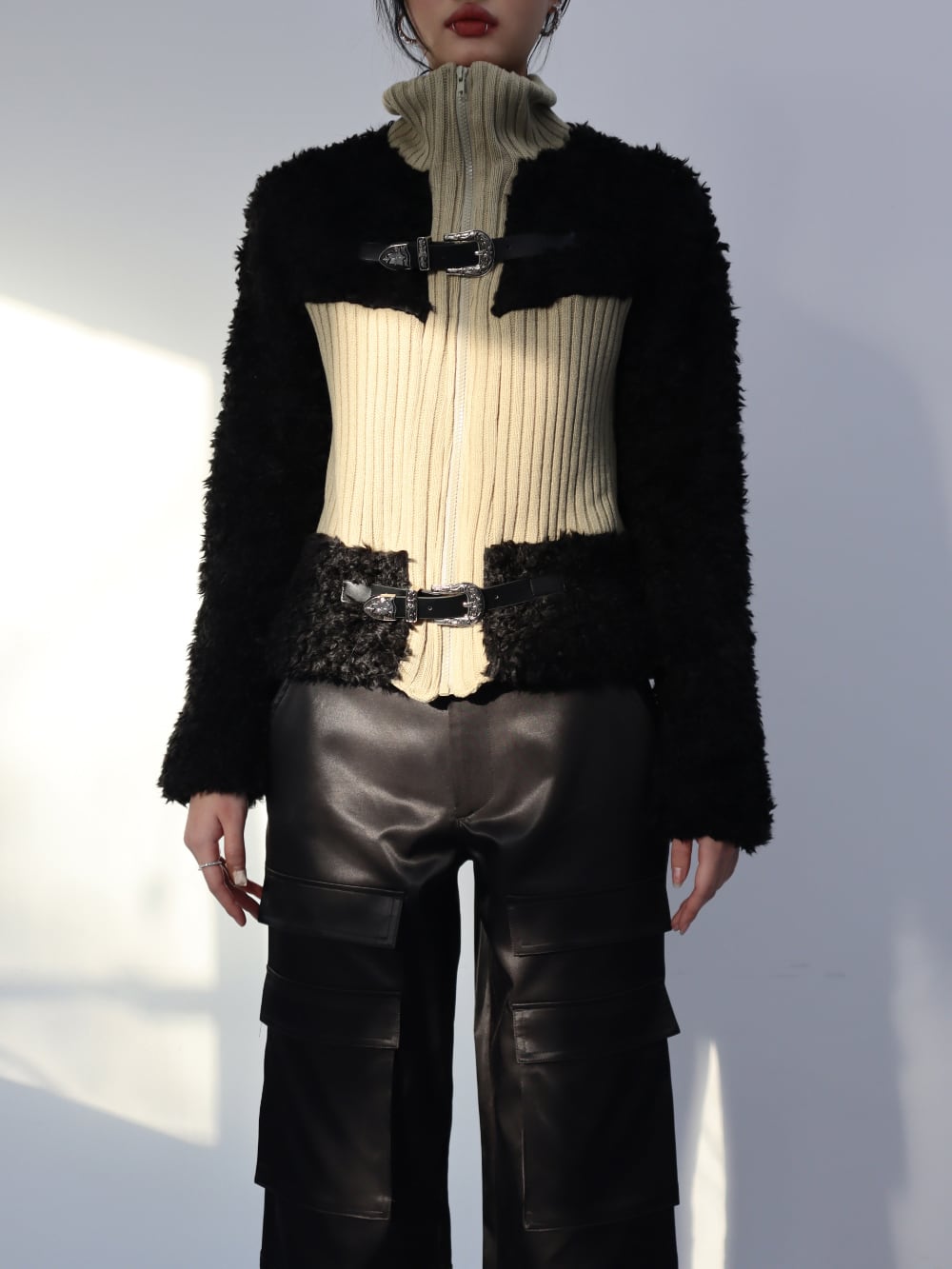 リブとプードルファーの異素材の組み合わせが珍しいアウターです。